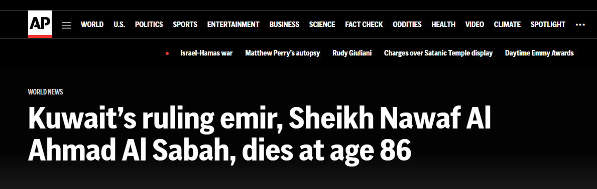 В субботу, 16 декабря, скончался Эмир Кувейта Наваф аль-Ахмед аль-Джабер аль-Мубарак ас-Сабах в возрасте 86 лет.