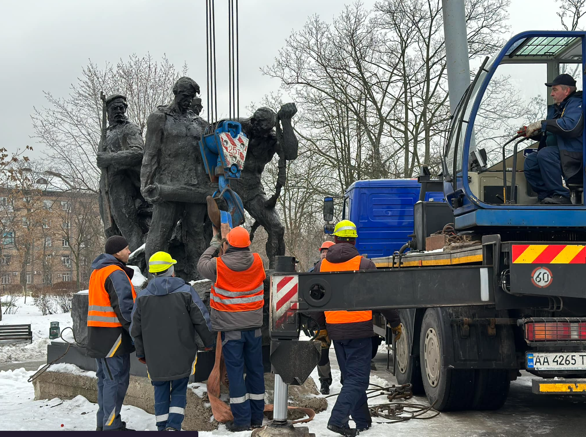 Демонтаж памятника в Киеве. Фото: фейсбук
