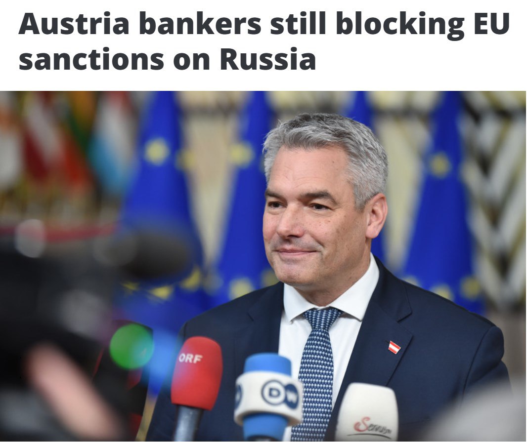 Как мы сообщали, Вена блокировала 12-й пакет антироссийских санкций Европейского союза в ответ на решение Киева. Австрийские власти заявили, что поддержат новый пакет антироссийских санкций, если будет выполнено их условие об исключении Raiffeisen Bank International из списка спонсоров войны.