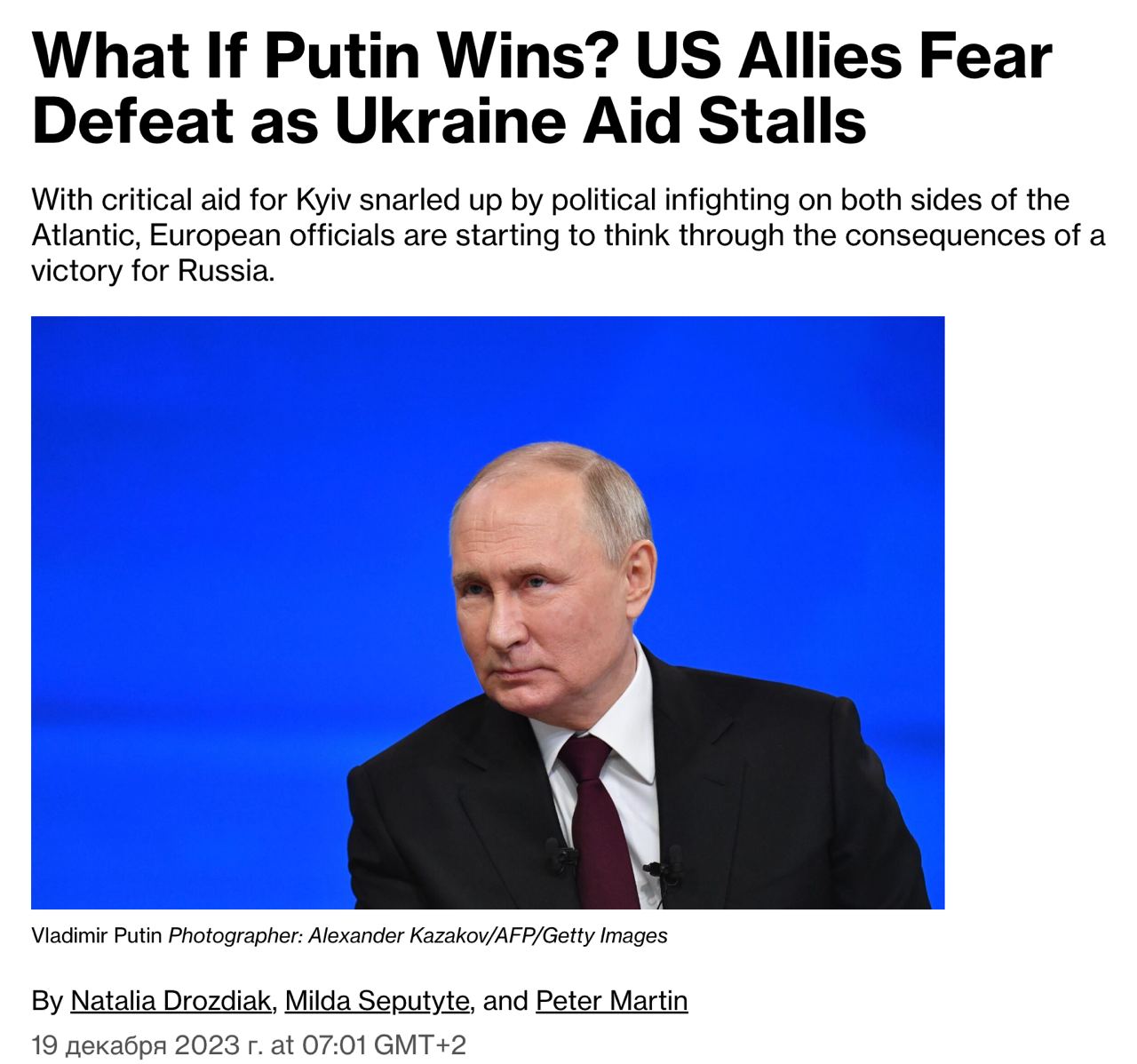 Проблемы с выделением западной помощи Украине заставляют ее союзников размышлять о том, что президент РФ Владимир Путин может победить и Киеву придется пойти на переговоры с Москвой.