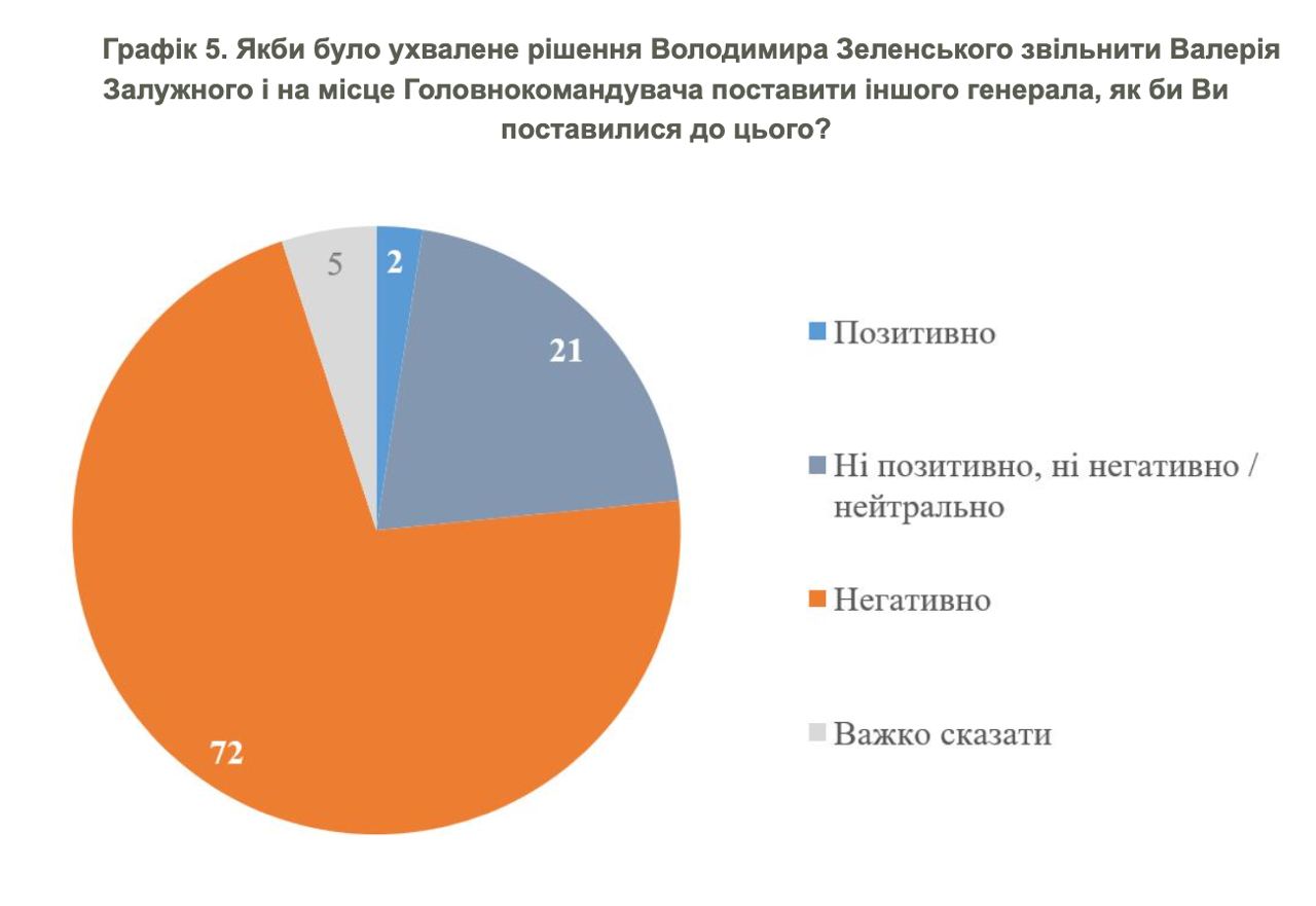 К возможной отставке Залужного негативно относится подавляющее большинство респондентов – 72%.