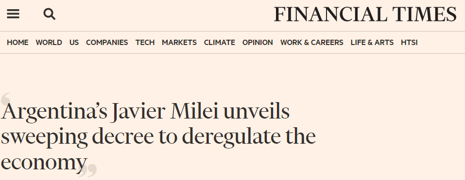 Новый президент Аргентины Хавьер Милей опубликовал радикальный указ о дерегулировании экономики.