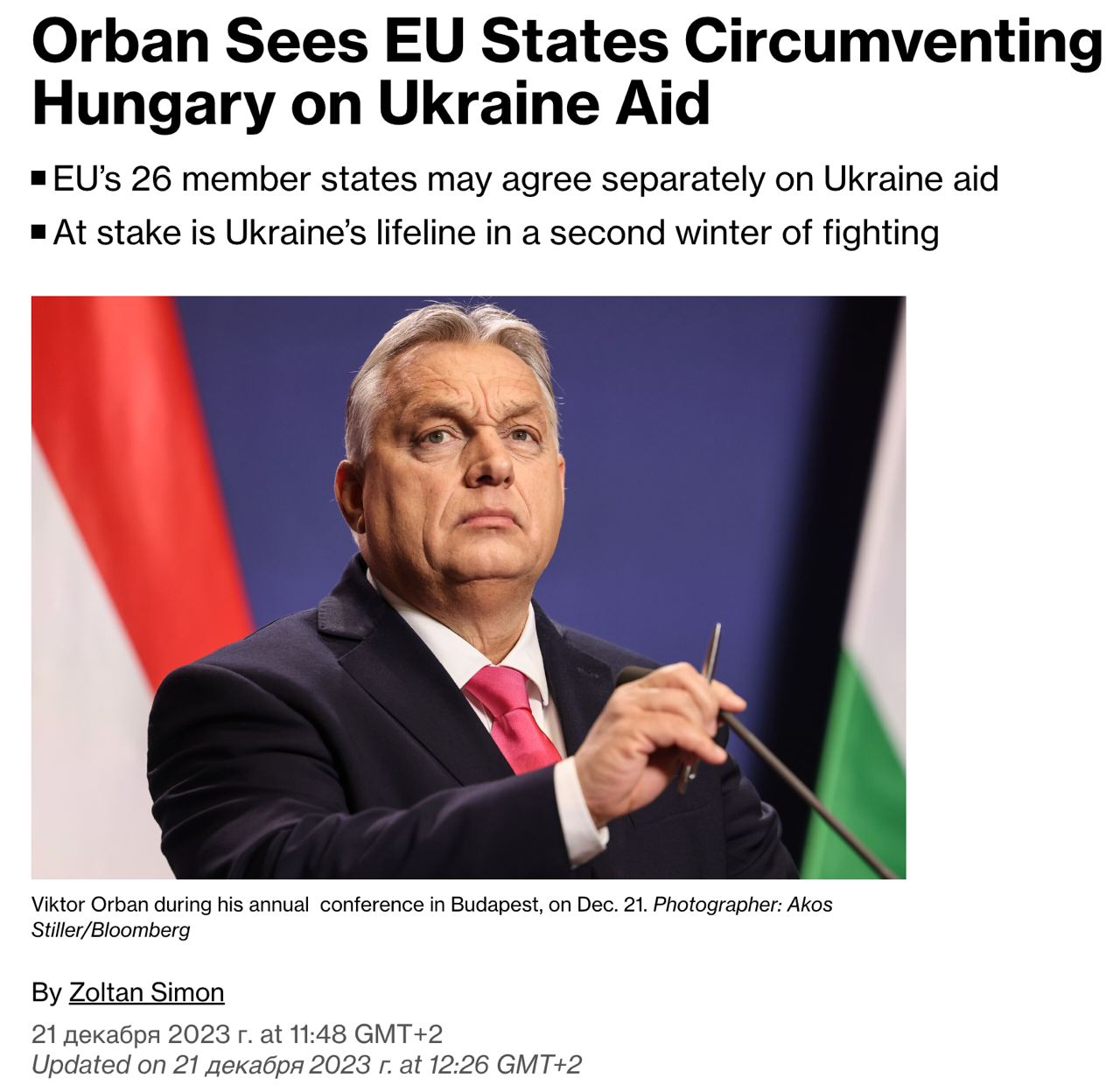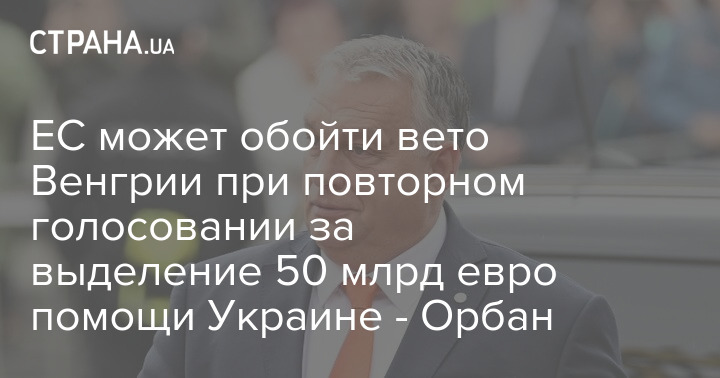 Премьер Венгрии Виктор Орбан заявил, что ЕС может обойти вето Венгрии при повторном голосовании за выделение 50 млрд евро помощи Украине.