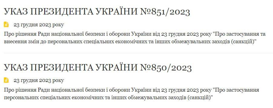 Президент Украины Владимир Зеленский подписал два новых указа №850/2023 и №851/2023 о персональных санкциях. Там перечислены 134 компании и 51 человек.