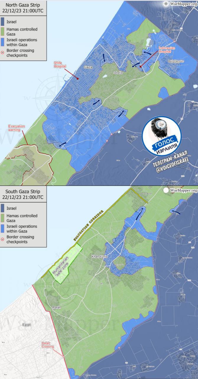 Отметим, что 27 декабря исполняется два месяца с начала сухопутной операции Израиля в секторе Газа. За это время израильская армия смогла разрезать сектор на две части и отрезать его север от моря. Но полностью сопротивление ХАМАС до сих пор не подавлено. Палестинское движение продолжает контролировать большую часть сектора, ведя ожесточенные бои с ЦАХАЛ, опираясь на широкую сеть подземных туннелей.