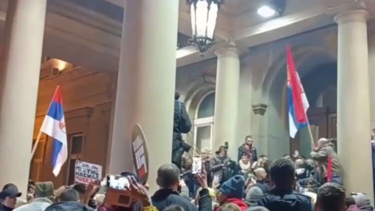 В ответ жандармерия Сербии применила против толпы слезоточивый газ и блокировала изнутри щитами вход в администрацию Белграда.