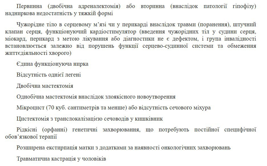 Полный список заболеваний, по которым человеку присваивается третья группа - на скриншотах постановления Кабмина №10 от 2015 года.
