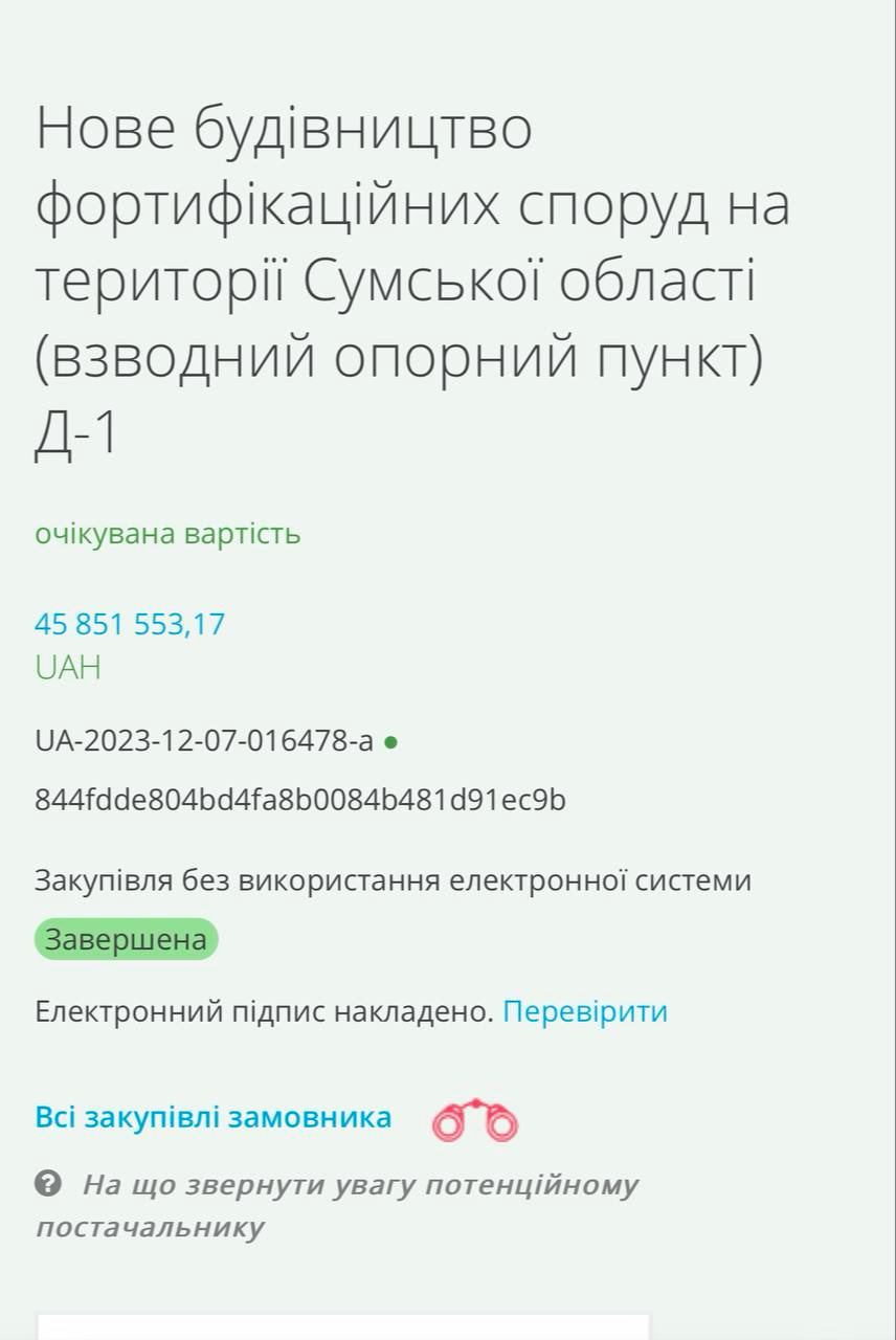 Фирма главы Сумского облсовета Виктора Федорченко выиграла тендер на строительство взводного опорного пункта (ВОП) почти за 46 миллионов гривен.