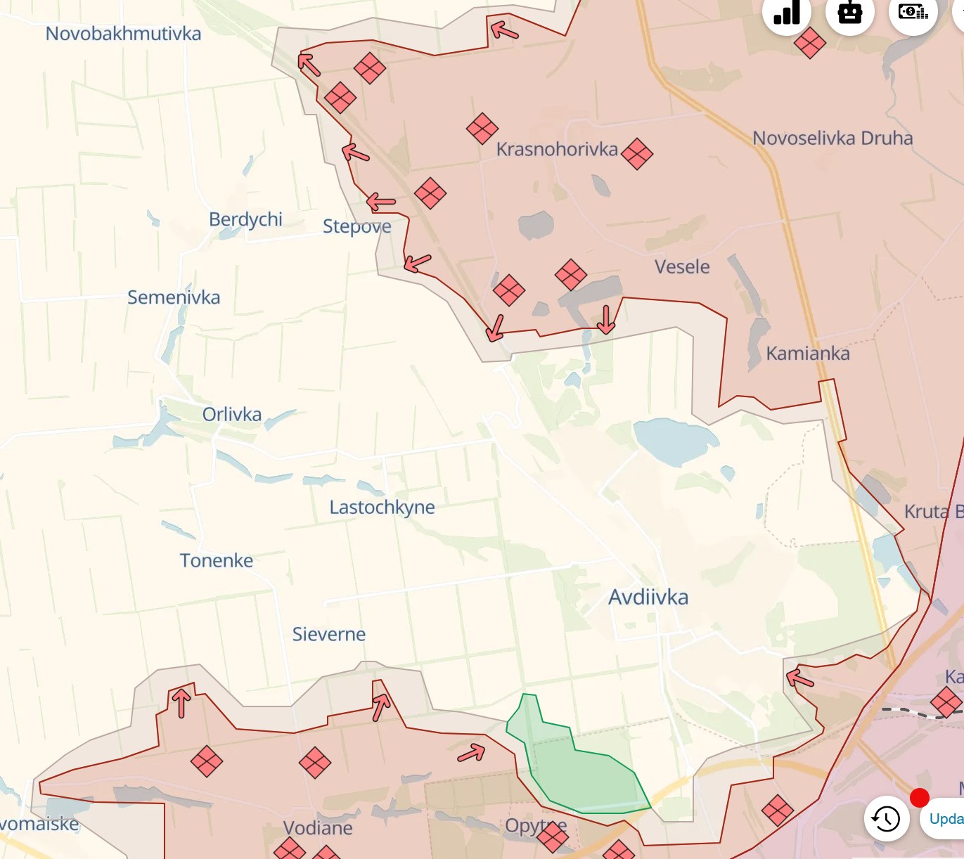 По ситуации на "земле" - изменений украинские паблики не фиксировали. Они пишут о попытках россиян наступать в Степном к северу от Авдеевки, в районе авдеевских дач и южнее - у Северного и Первомайского.