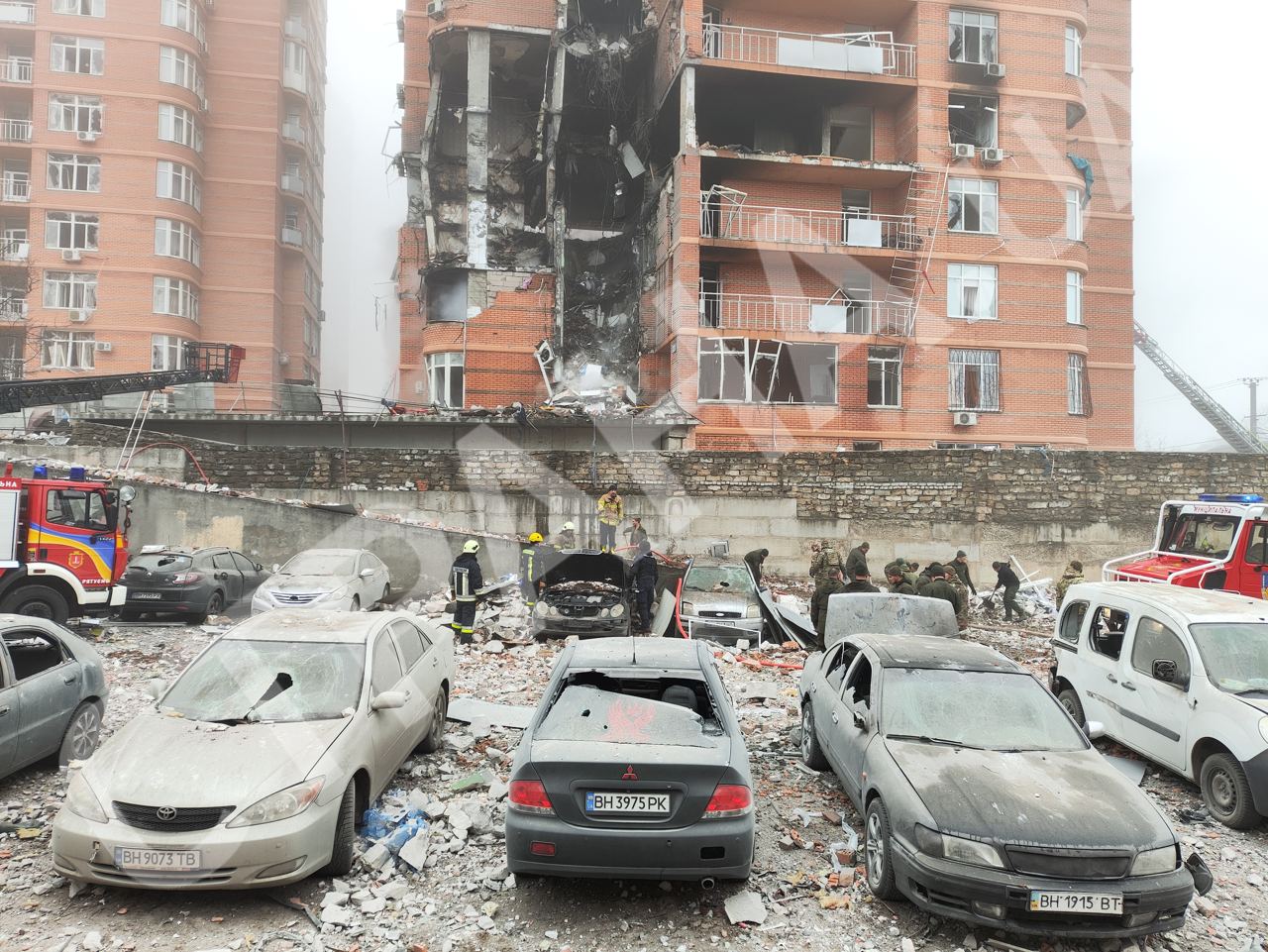 Появились кадры с места прилета ракеты по жилому дому в Одессе.