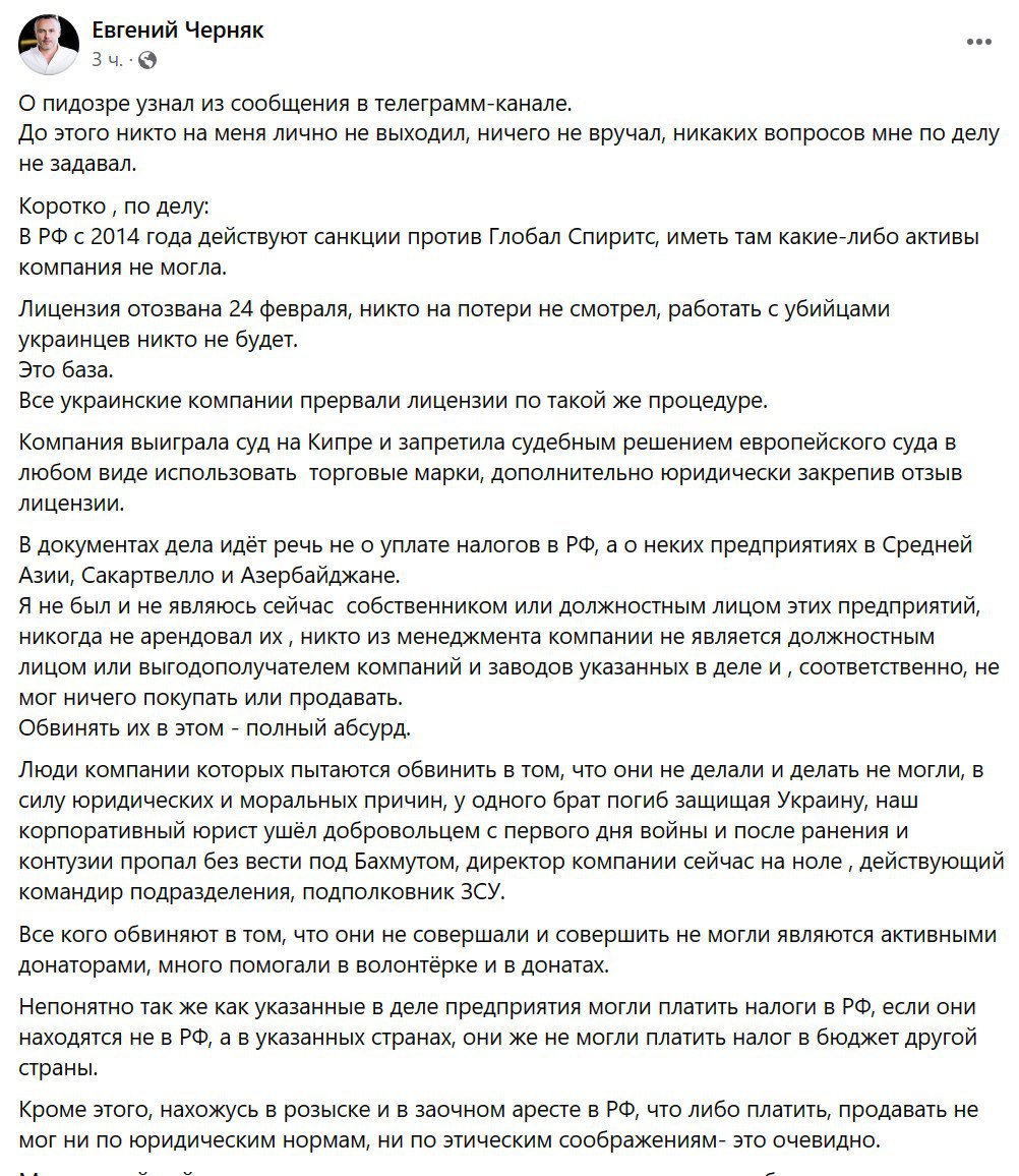 Владелец "Хортицы" Евгений Черняк более развернуто прокомментировал подозрение СБУ в свой адрес (бизнесмена обвинили в уплате налогов для российского бюджета).