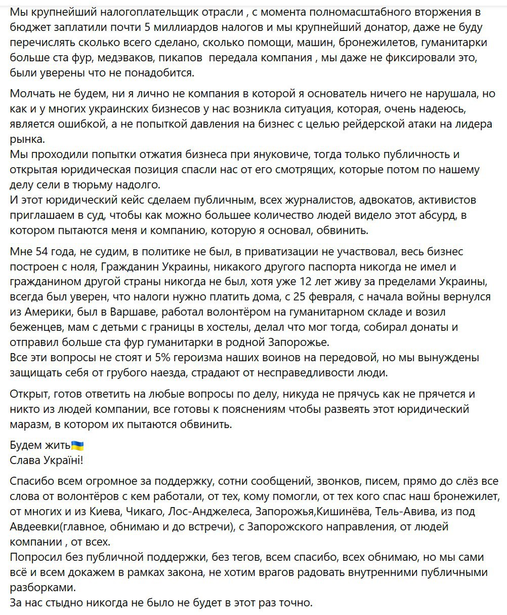 По его словам, "возникла ситуация, которая, очень надеюсь, является ошибкой, а не попыткой давления на бизнес с целью рейдерской атаки на лидера рынка".