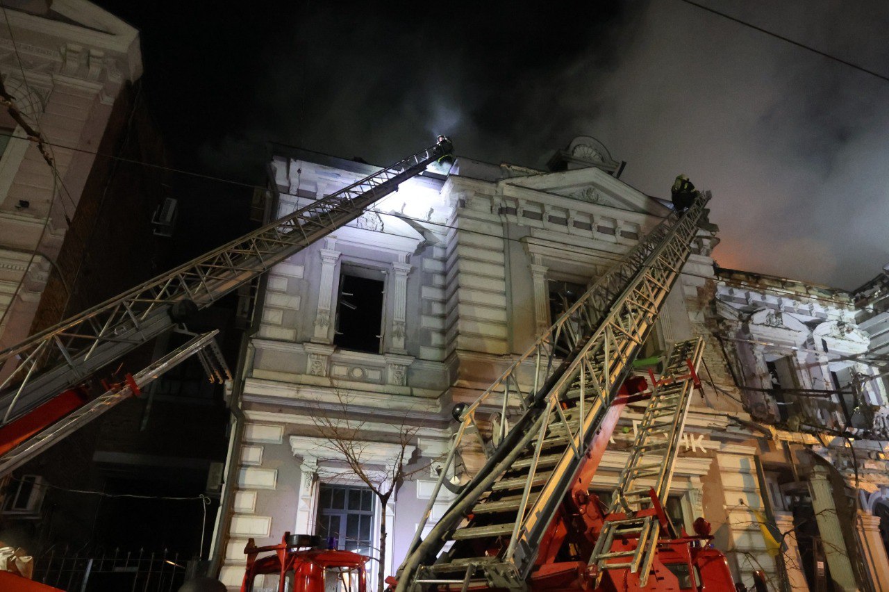 "В результате ночной атаки российских беспилотников на Харьков, повреждения получили здания в центре города.