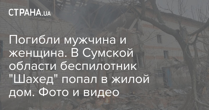 В понедельник, 1 января, в Сумской области после удара беспилотника "Шахед" по двухэтажному жилому дому погибли мужчина и женщина. Еще одна женщина получила ранения.