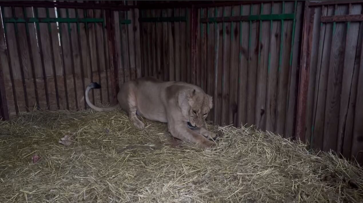 В киевском Центре спасения животных львица Юна получила серьезную контузию в результате утренних обстрелов.
