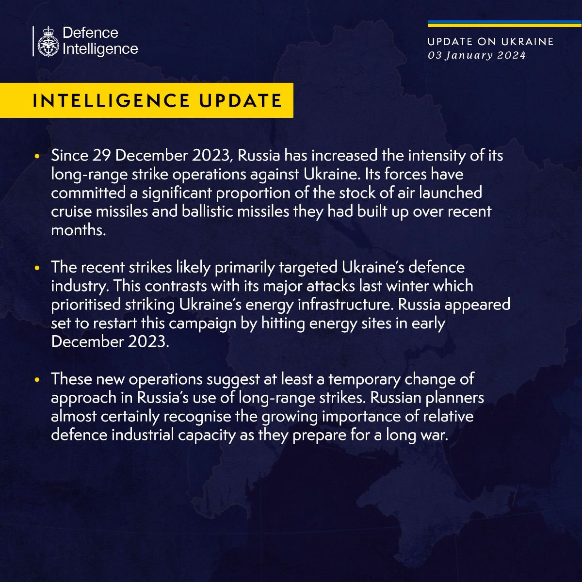 Отмечается, что на две последние атаки 29 декабря и 2 января РФ потратила "значительную часть запасов крылатых и баллистических ракет воздушного базирования", накопленных ею за последние месяцы.