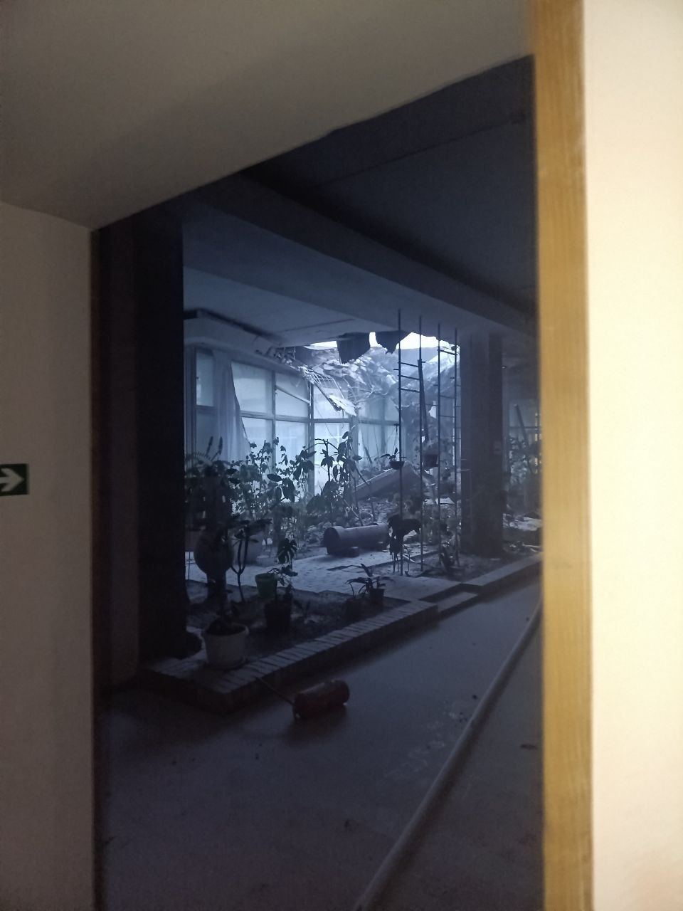 "Когда мы проводили эвакуацию, она прямо передо мной пробила крышу и упала. Я думал мне звездец, но она не разорвалась... На фото и есть расстояние передо мной и ракетой в холле...", - пишет Дед.