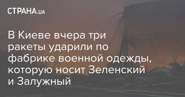 Вчерашним ракетным обстрелом Киева была поражена фабрика военной одежды, которую носят президент Украины Владимир Зеленский и главком ВСУ Валерий Залужный. Компания М-Тас, производящая тактическое снаряжение, одежду, обувь и другие аксессуары.