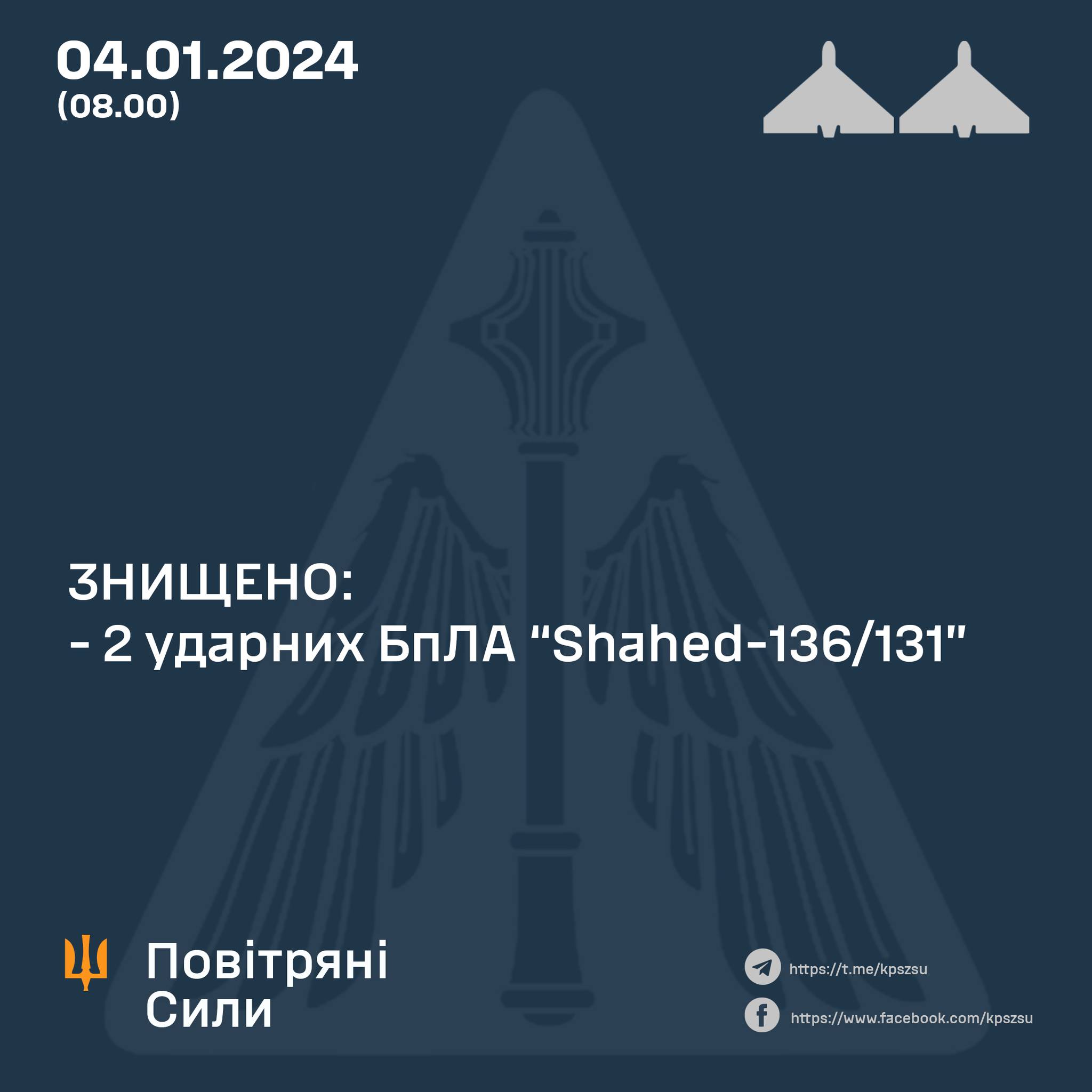 Ночью 4 января россияне запустили по Украине три зенитных управляемых ракеты и два беспилотника.
