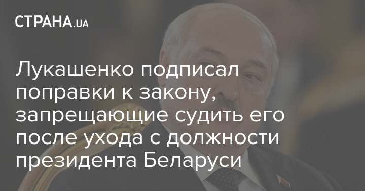 Лукашенко подписал поправки к закону "О президенте", которые наделяют ушедшего в отставку президента и его семью неприкосновенностью в связи с любыми преступлениями, совершенными за время правления.