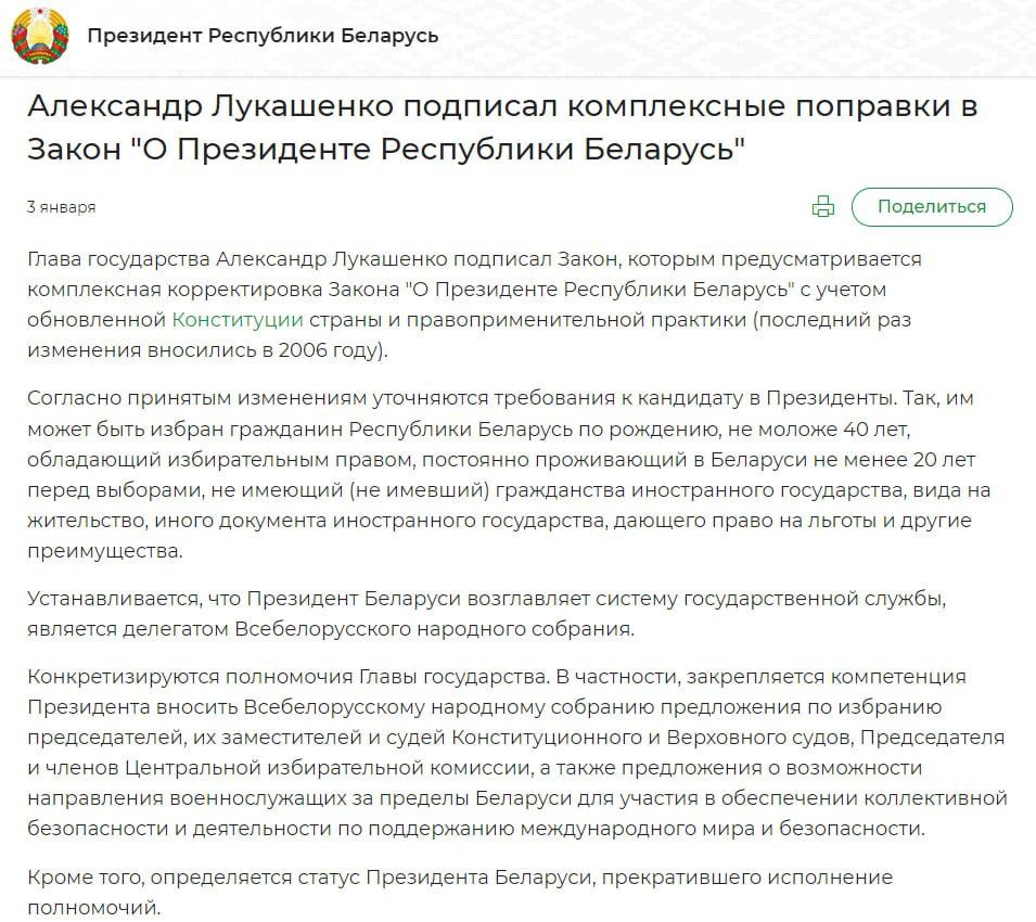 Напомним, что в марте 2022 Лукашенко подписал изменения в конституцию Беларуси.