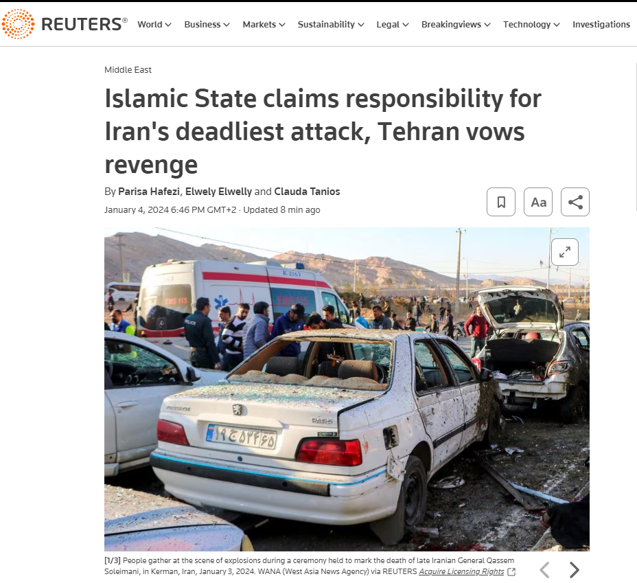 "Исламское государство" взяло на себя ответственность за взрывы на поминках генерала Сулеймани в Иране