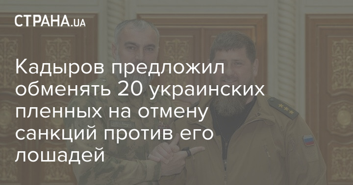 Глава Чечни Рамзан Кадыров предложил Западу освободить 20 украинских военнопленных в обмен на снятие санкций с членов его семьи, лошадей и самолетов.