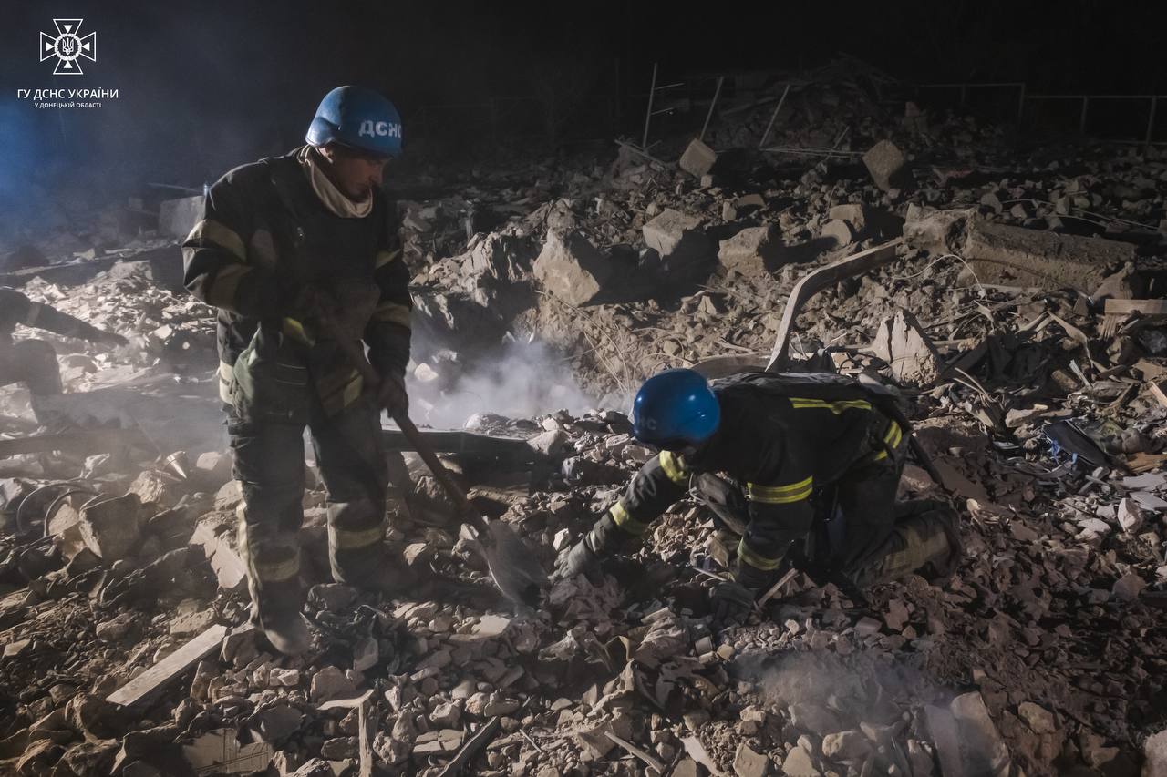 "В г. Покровск на месте двух разрушенных частных жилых домов 1 человек спасен из-под завалов, изъято тело женщины, продолжаются аварийно-спасательные работы по поиску 4 человек, из них 2 детей" - отмечают в ГСЧС.