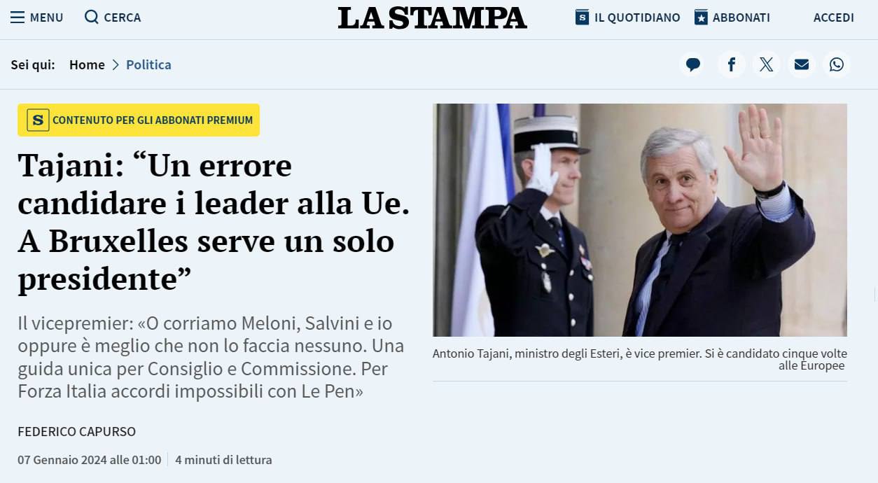 "Если мы хотим быть носителями мира во всем мире, нам нужна европейская армия. Это фундаментальная предпосылка для проведения эффективной европейской внешней политики. В мире с такими могучими игроками, как США, Китай, Индия, Россия, с кризисами, простирающимися от Ближнего Востока до Индо-Тихоокеанского региона, итальянских, немецких, французских или словенских граждан может защитить только то, что уже существует, и это называется Евросоюзом. Поэтому оборона и общая армия должны стать конкретным фактом", - заявил Таяни.