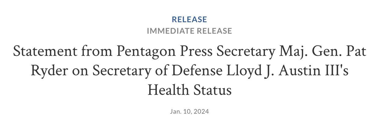 Ранее сообщалось, что глава Министерства обороны США Ллойд Остин четыре дня провел в больнице, в отделении интенсивной терапии. Его обязанности во время его пребывания в больнице исполняла замминистра Кэтлин Хикс.