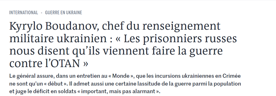 Об этом заявил начальник Главного управления разведки при Министерстве обороны Украины Кирилл Буданов в интервью французской газете Le Monde.