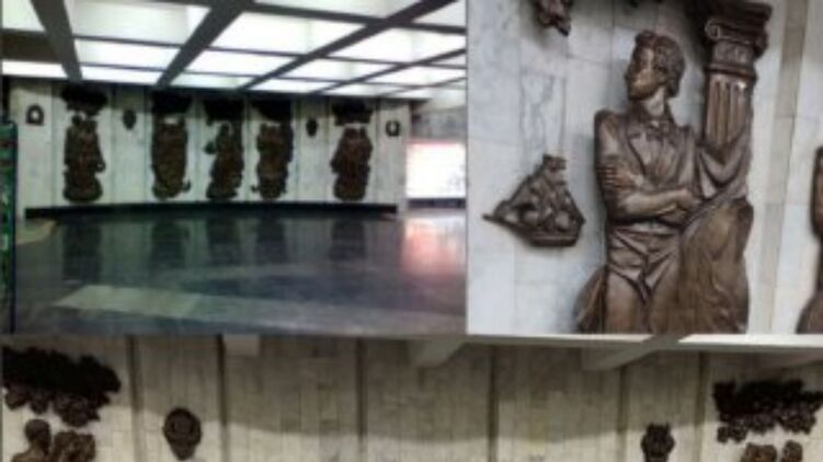 С одноимённой станции харьковского метро демонтировали барельеф Пушкина. Фото: Телеграм
