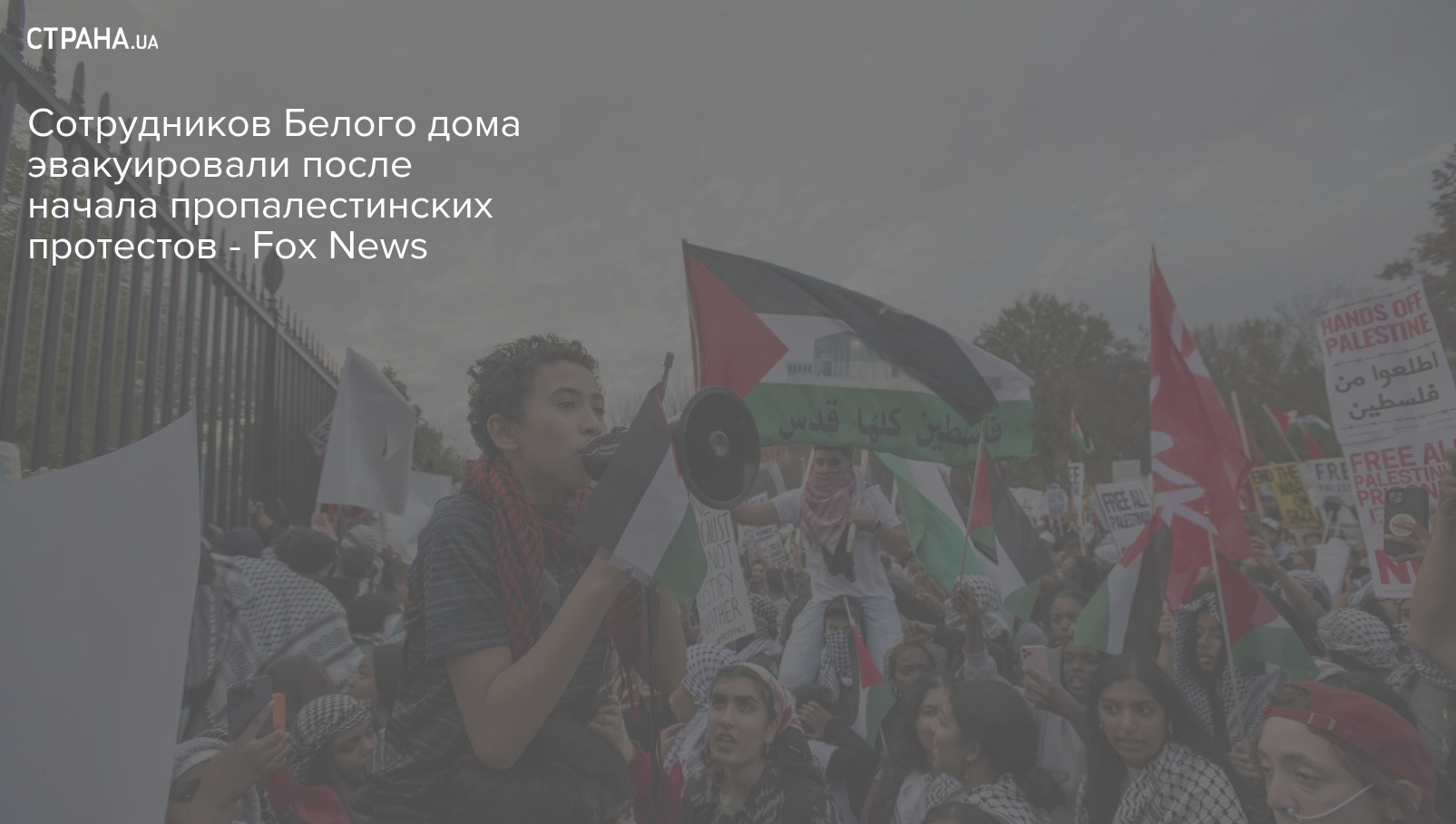 "Сотрудники Белого дома перемещены после того, как сторонники палестинских беспорядков повредили антипалестинское ограждение и бросали предметы в полицейских" - говорится в сообщении телеканала.