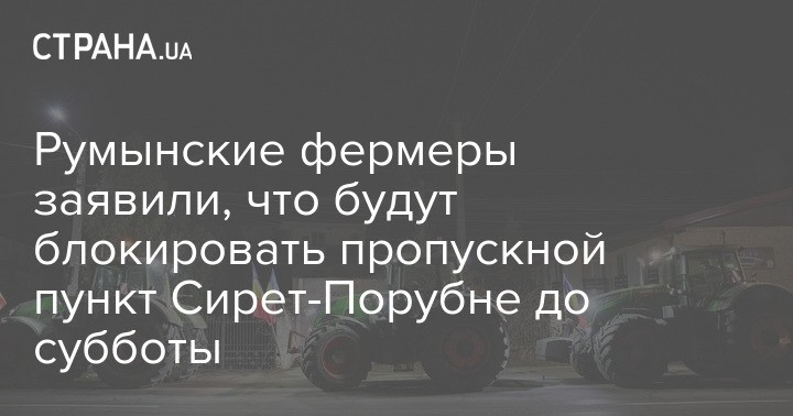 Румынские фермеры заявили, что будут блокировать пропускной пункт Сирет-Порубне до субботы