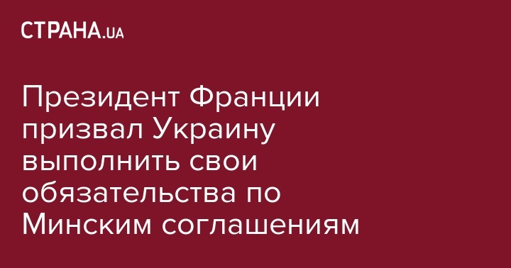 Президент Франции призвал Украину выполнить свои обязательства по Минским соглашениям