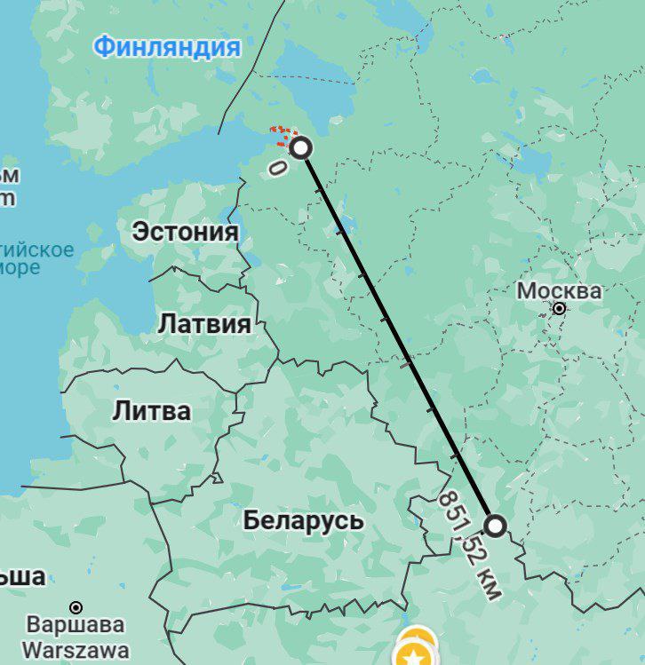 Кратчайшее расстояние от границы Украины до северной столицы РФ, если не залетать в Беларусь - 851 километр по прямой.