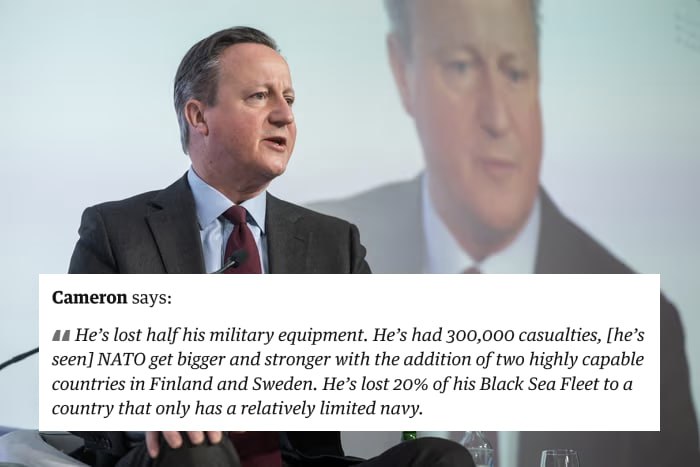 Кэмерон добавил, что экономический потенциал Запада в 25 раз превышает экономику РФ, но нужно распорядиться этими ресурсами правильно.