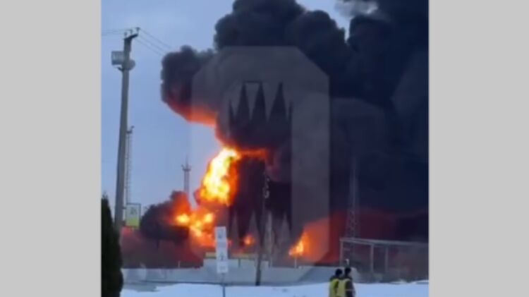 Пожар на нефтебазе в Клинцах. Скриншот видео