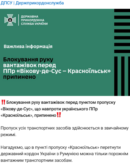 Таким образом заблокированными остаются еще два КПП на границе с Румынией.