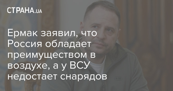 Глава Офиса президента Андрей Ермак заявил, что Россия обладает преимуществом в воздухе. Кроме того, у ВСУ недостает снарядов, ракет большой дальности и противоминных машин.