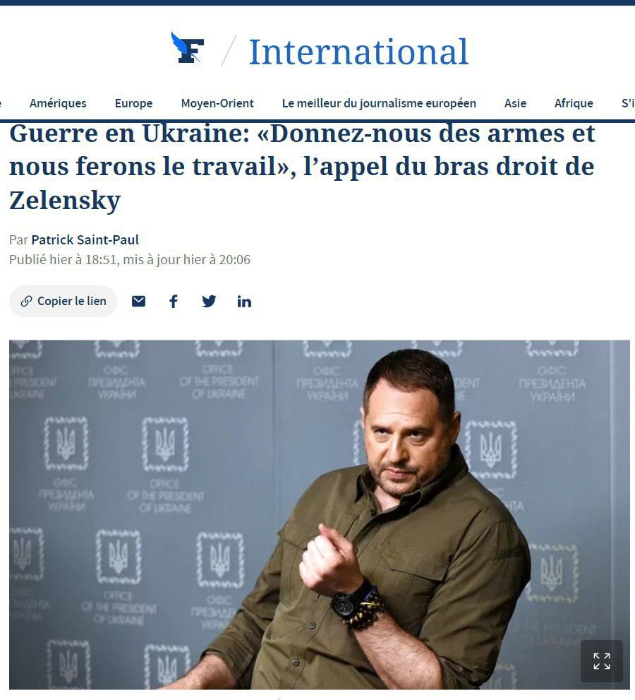 "На фронте солдаты жалуются на нехватку людей и средств и говорят, что у них больше нет возможности наступать. Это, безусловно, проблема, и нет смысла ее скрывать. Некоторым солдатам нужен отдых. Правительство и Генштаб работают над новым законом о мобилизации. И над реалистической военной стратегией", - сказал Ермак.