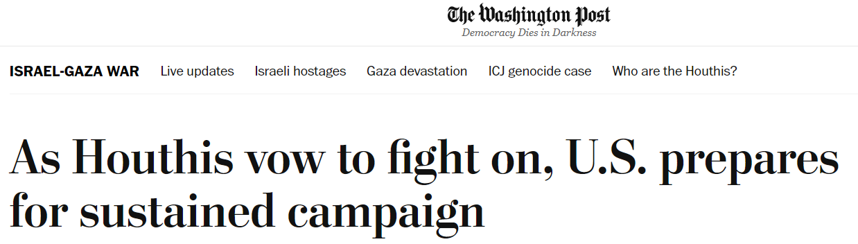 Представители администрации, говорившие на условиях анонимности, описали свою стратегию в Йемене как попытку подорвать военный потенциал хуситов, чтобы ограничить их способность совершать нападения на суда в Красном море и Аденском заливе или, как минимум, обеспечить достаточный сдерживающий фактор, чтобы судоходные компании, избегающие риска, возобновили отправку судов по водным путям региона.