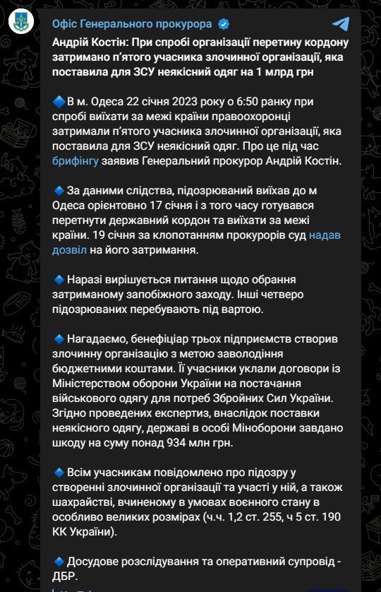 Напомним, Роман Гринкевич является одним из фигурантов в уголовном производстве по поставке некачественной одежды для ВСУ почти на 1 млрд гривен. Его отцу Игорю Гринкевичу и еще трем подозреваемым инкриминируют создание и участие в преступной организации, а также мошенничество, совершенное в условиях военного положения в особо крупных размерах.