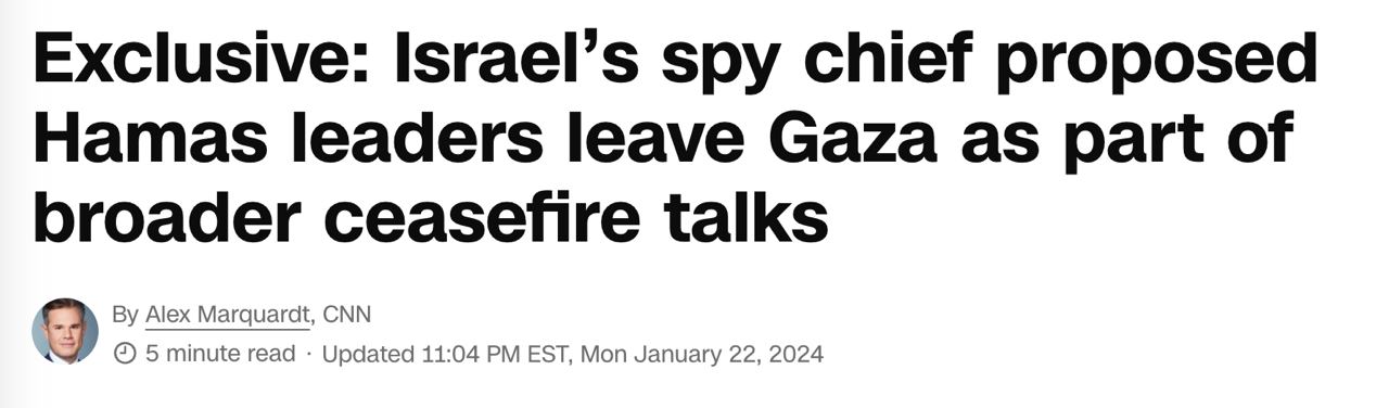 По данным CNN, Израиль также предлагал, чтобы высокопоставленные лидеры ХАМАС покинули сектор Газа. Якобы такое предложение Израиля как минимум дважды за последние недели обсуждалось в рамках более широких переговоров о прекращении огня: в Варшаве и в Дохе.