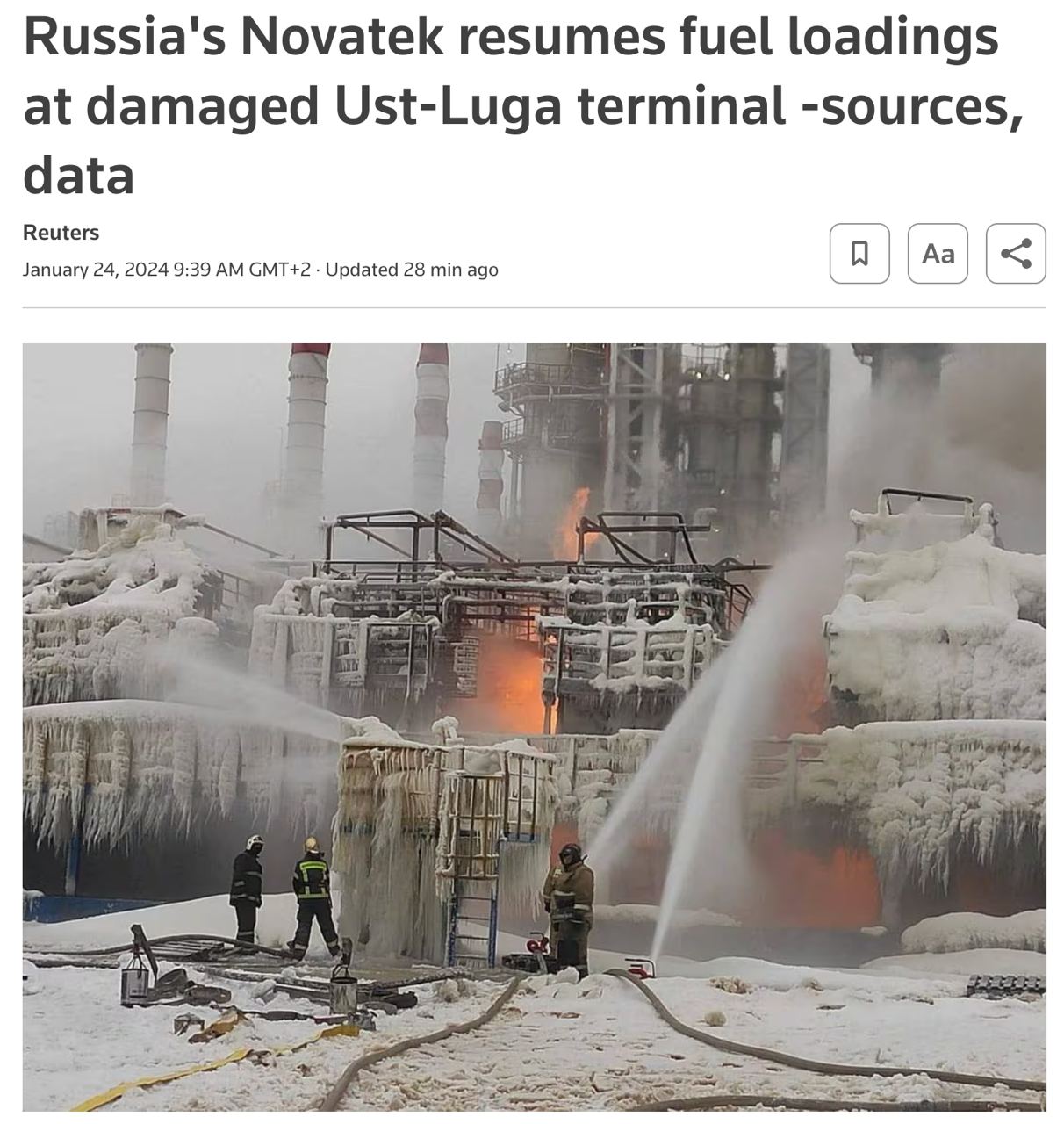 10.18 Портовой терминал "Новатэка" в Ленинградской области, горевший после предполагаемого удара дроном, возобновил отгрузку топлива, утверждает Reuters со ссылкой на источники в отрасли и данные Лондонской фондовой биржи.