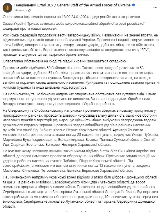 В среду, 24 января, в Украине идет 700-й день войны с РФ.