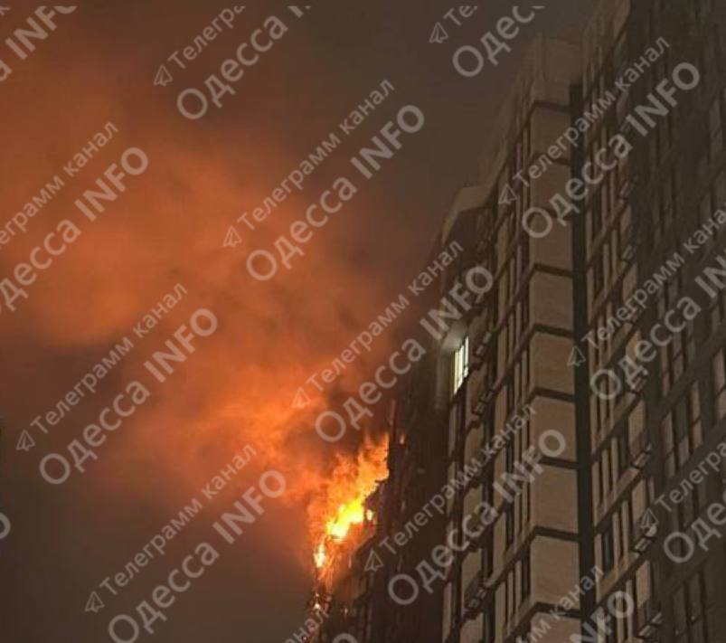 21:38 Фото пожара в одесской многоэтажке после прилета "Шахеда" публикуют местные телеграм-каналы.