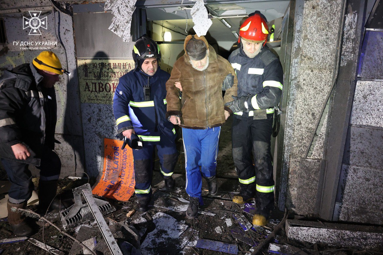 Вечером 23 января враг нанес ракетные удары по центральной части города Харькова. В результате обстрелов повреждены жилые дома, магазины и образовательное учреждение. Произошло две ячейки возгорания на общей площади 15 кв.
