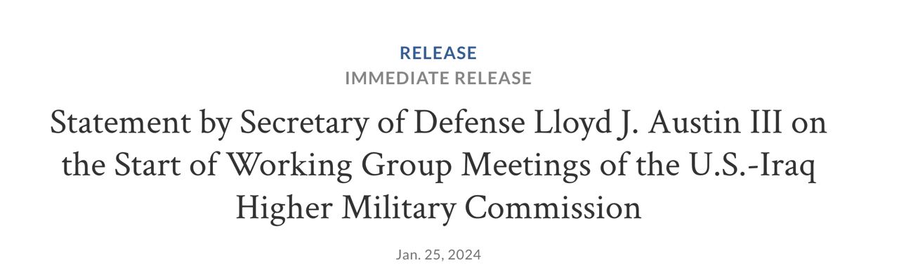 "В ближайшие дни США и власти Ирака начнут заседания рабочей группы Высшей военной комиссии США и Ирака (ВВК), дав старт процессу, который обе стороны обязались инициировать во время совместного американо-иракского диалога по сотрудничеству в области безопасности 7-8 августа 2023 г... Это обеспечит переход к долгосрочному двустороннему партнерству в области безопасности между Соединенными Штатами и Ираком", - сказано в сообщении.