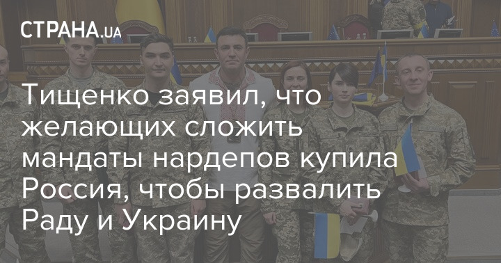 По его утверждению, 17 депутатов от "Слуги народа" решили сложить мандаты, потому что "пророссийские силы предложили им деньги". Как считает Тищенко, это делается с целью развалить парламент и страну в целом изнутри.